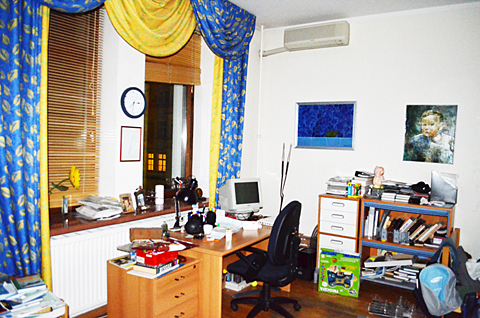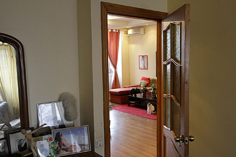 Пятый этаж. Сталинский дом. Есть дворик. Детская площадка. Есть магазины и кафе рядом в большом количестве. Есть автомобили для съемок. 1-я квартира - евро: 77 метров. Высокие потолки. Метро Маяковская рядом,евро-ремонт, лоджия. Студио (кухня объединена с гостинной) - 32 метра. Спальни по 18 метров. Кабинет. Много картин и фотографий. Мольберт. Кошка игровая с разными глазами. Ванна маленькая без душевой кабины с обычной ванной. Лифта нет. 5\5 этажного дома. Площадка перед квартирой без тамбура.