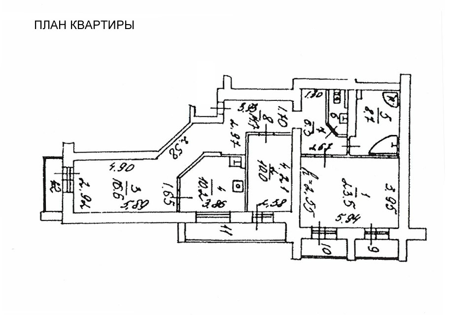 136. 3-х КОМНАТНАЯ КВ. С ЗАЛОМ (Семёновская):