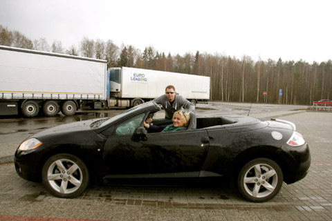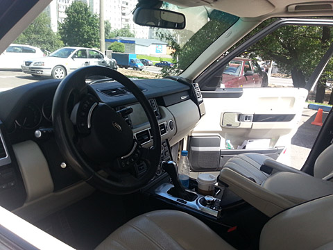 асфальт. Белый кожаный салон. |
